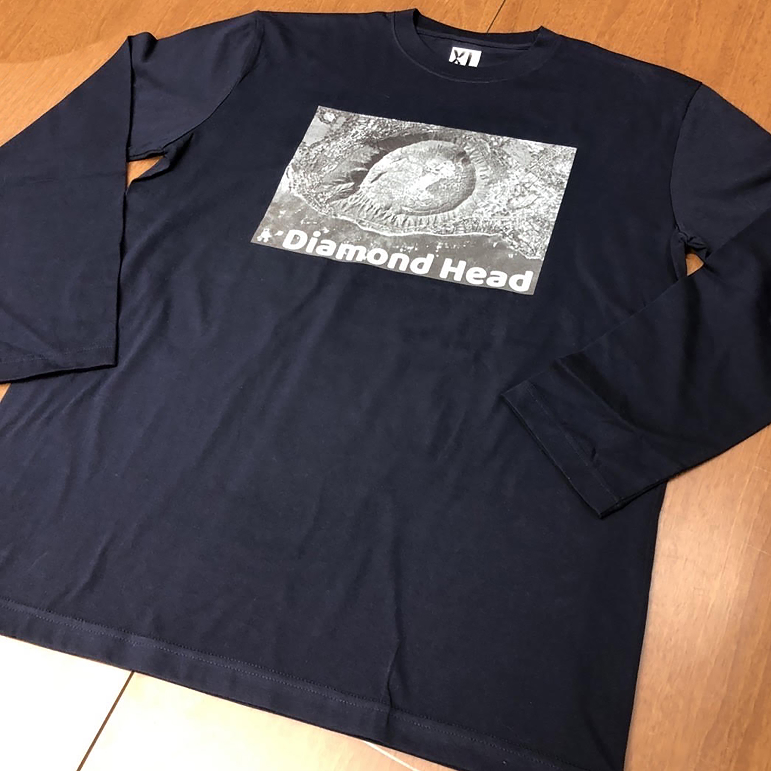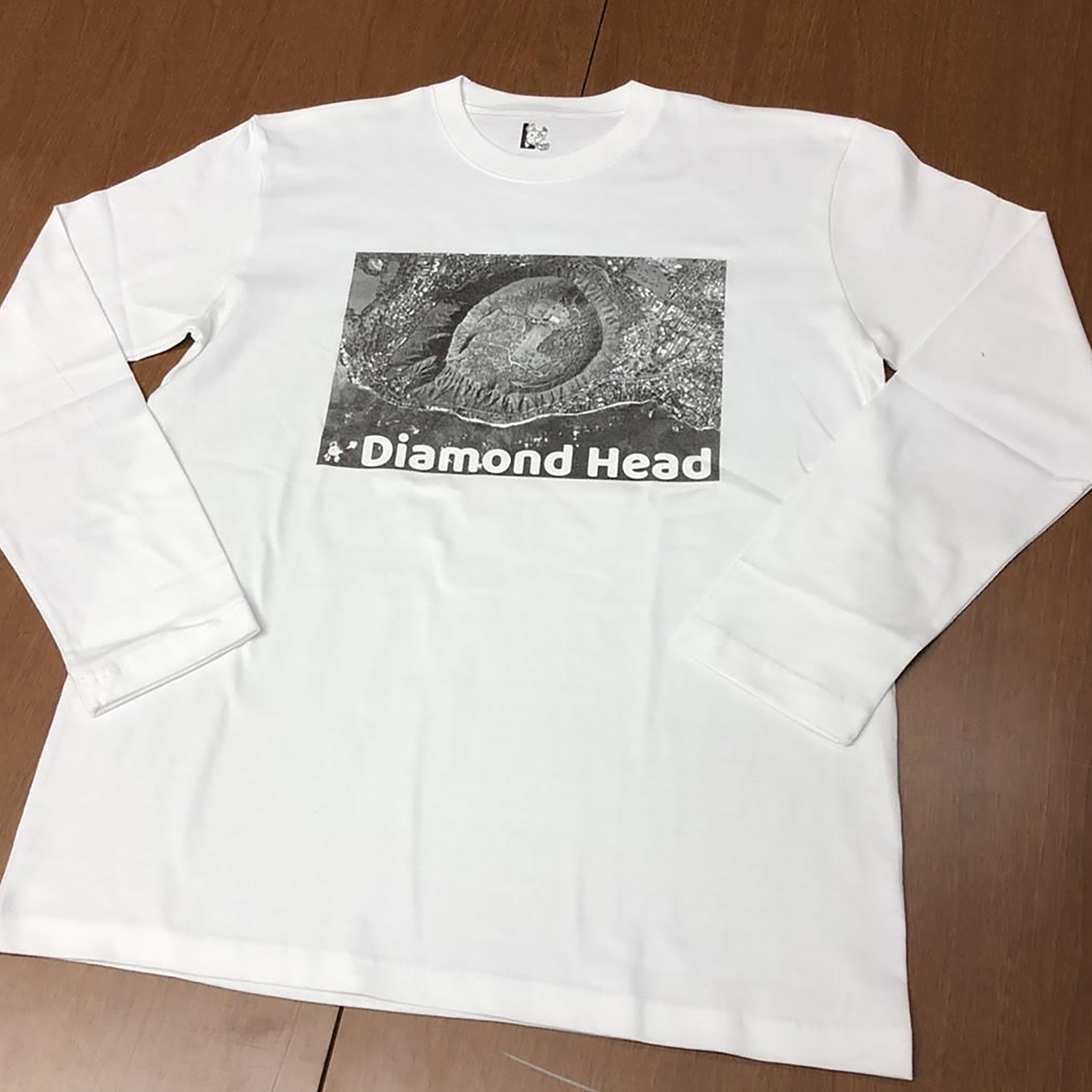 ダイヤモンドヘッドを真上から見下ろした写真を使って、長袖Tシャツを作ってみました。
